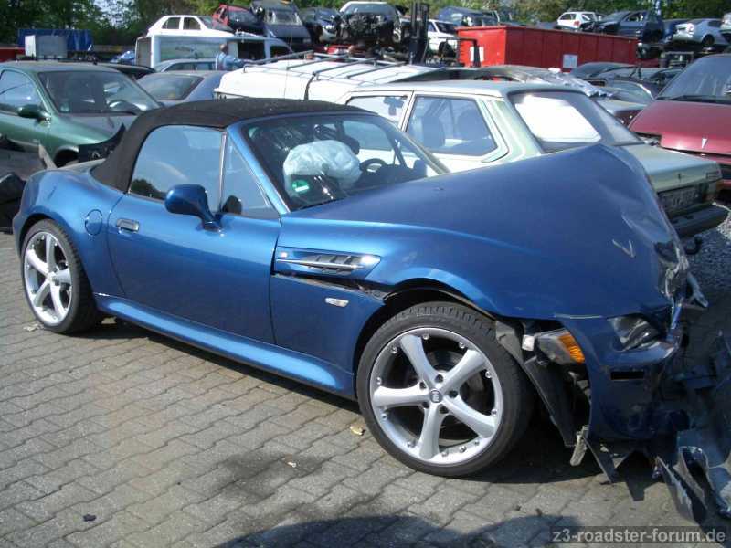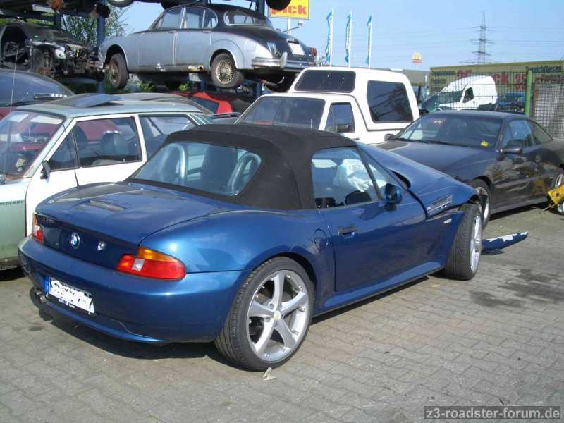 Es handelt sich um einen 2.8er FL in topasblau metallic. Oregon schwarze Sportsitze, verchrohmte Überrollbügel, M-Kiemen, KAW Federn,K&N Sportluftfilter, Klima, Verdeck elektrisch, Distanzscheiben (HA 25mm VA. 15mm), eine Woche alte 225er Hankook Reifen auf HA, Bj. 06/1999, Km 1100000. Standort Mülheim Ruhr.