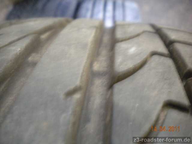 Hinten sind Bravuris Reifen (dot 4707) montiert die auch noch sehr gutes Prfil aufweisen (gut 6mm)
