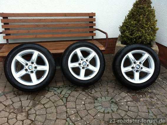 Biete 4 originale BMW Alufelgen (Styling 43 Sternspeiche) mit neuwertiger Bereifung! Die Felgen weisen normale Gebrauchsspuren auf und wurden auf einem Z3 gefahren.
