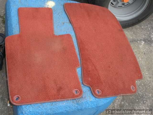 Gebe meine Original Fußmatten vom Roadster ab. Beifahrerseite ist super, Fahrerseite natürlich mit Druckspuren der Absätze, also gebraucht. Nicht durchgewetzt oder löchrig. Waren in meinem Roadster ´passend zum Leder Taninrot.