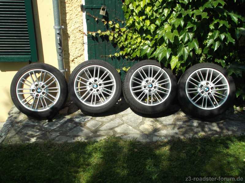 Verkaufe Original BMW 17 Zoll Felgen (vorne 7 1/2 J x 17, hinten 8 1/2 J x 17), mit Michelin Reifen, vorne Pilot Sport 225/45 ZR 17 (nur noch für ein paar Tausend km gut), hinten Pilot Sport 3 245/40 ZR 17 91Y (sind erst ca. 4000km gelaufen). Die Räder sind im Landkreis Dillingen/Donau (Bayern), ich könnte sie aber auch nach München liefern. Preis 600 Euro (die beiden hinteren Reifen haben 640 Euro gekostet). Tel 0172-6044035
