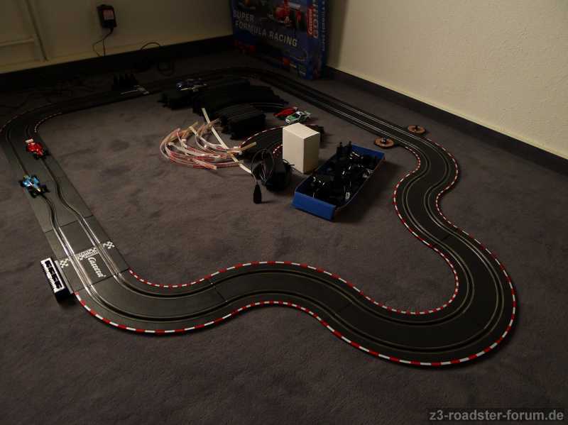 Wir haben die Bahn eben noch mal aufgebaut und getestet, heiße "Renn-Events" sind möglich. Trotzdem mit dem Hinweis "Bastlerartikel", ggf. lassen sich die beiden defekten Autos ja wieder zum Leben erwecken.