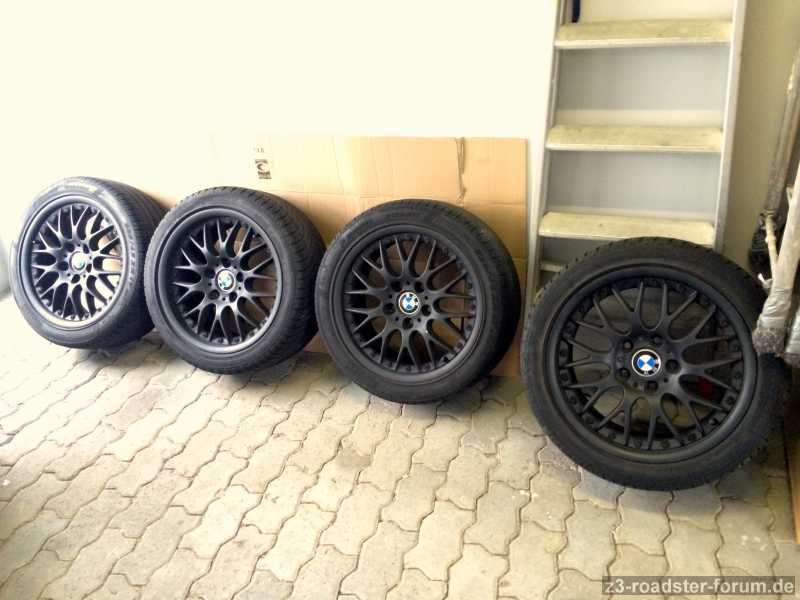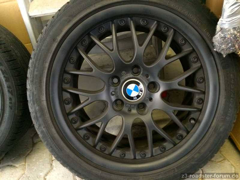 Felgen sind unbeschädigt und z.Zt. Schwarz foliiert ! Was aber abziehbar ist (Sprühfolie!) Gekauft hab ich sie hier im Forum mit Reifen für 600,- Inc. Versand
