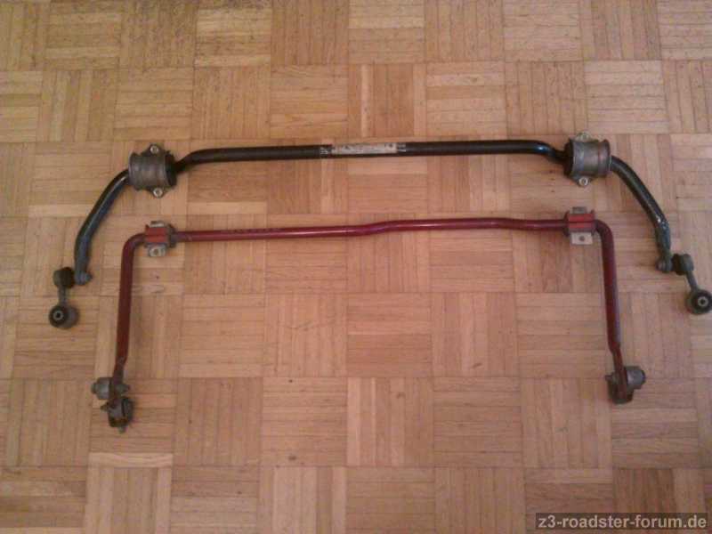 nach Rückrüstung auf das original M-Sportfahrwerk, biete ich hier meine Hartge Stabilisatoren mitsamt Koppelstangen und Halterungen für die Vorder- und Hinterachse an, siehe Photos. Die Stabis sind 15 Jahre und 49.000 km alt und waren im Z3 2.0l, Facelift, Bj. 1999, verbaut. Bei Interesse bitte ich um Angebote per email an [Mailadresse ist nur für registrierte Benutzer sichtbar] .