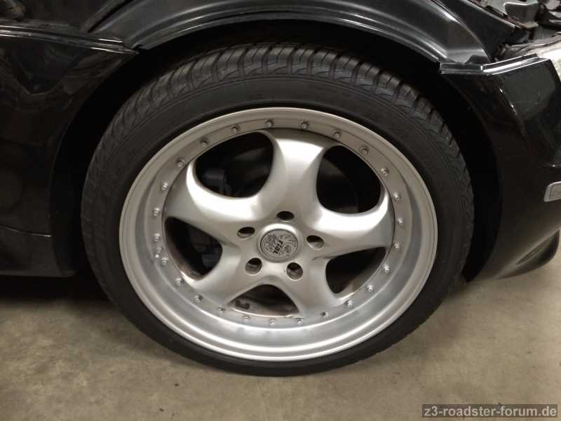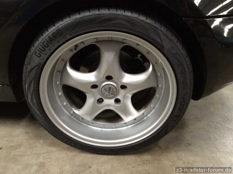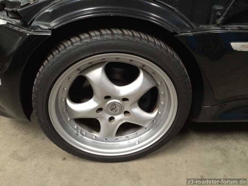 Die Felgen selber wurden halbherzig lackiert, wobei die Bordsteinschäden rausgemacht wurden.