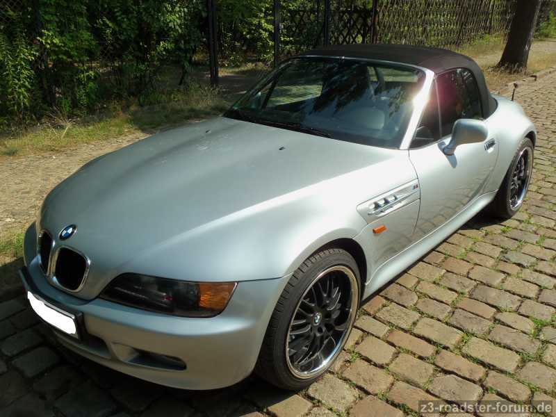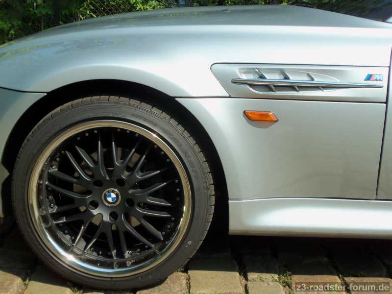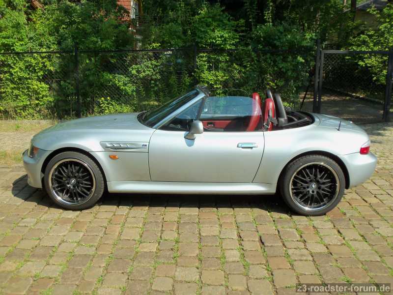 wie ihr seht hat er Hinten ein schöneres breiteres Heck bekommen vom Z 3M mit 4'fach Auspuffanlage desweiteren hat er die M Kiemen in Wagenfarbe auch zu erwähnen ist die wirklich gelungene Volllederkombination und nachgerüstete Mittelarmlehne auch in der selben Farbe(siehe Fotos ...Leder wurde 2 mal im jahr von mir mit Bienenwachs gepflegt ,auch das spührt und sieht man ) Nov ' 2013 gabs eine neue Heckscheibe wegen Vandalismus , März 2014 kamen Neue 18 Zoll Felgen mit Neuen Reifen in der Kombination VA : 225/ 40 HA : 255/ 35 ( eingetragen sind die orginal Bmw Z3 Felgen in 17 Zoll auf dem vorletzten Bild,ihr könnt also wählen welche ihr haben wollt ) Desweiteren wurden vordere Stoßdämpfer L / R sowie Pendelstützen,Traggelenke und Bremsflüssigkeit erneuert ! auch eine Neue Kupplung hat er bekommen ...