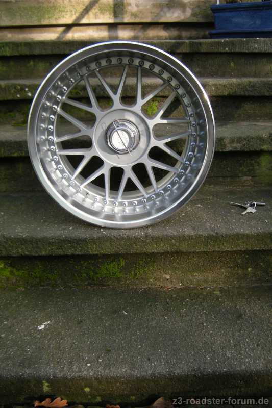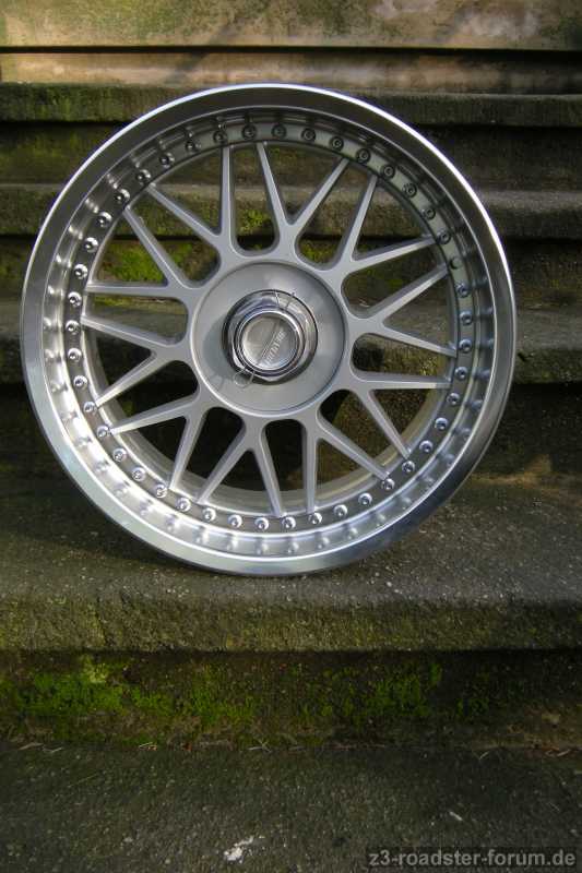 Einen fast ungefahrenen Radsatz dreiteiliger WRD-Mesh 2 Felgen für den ZM3-Roadster. Die Dimension beträgt für die VA 8,5 J 17 ET 33 und HA 10 J 17 ET 13 incl. der zugehörigen Kopie des Gutachtens (Traglast). Falls es zum Eintragen im Original benötigt wird ist das über den damaligen Händler (Gillet-Motorsport) immer noch möglich. Das Original wird ja mit dem Eintrag in die Papiere einbehalten. Ich hatte diese Felgen auf dem M-Roadster, die Laufleistung betrug max. 500 km. Es gibt fast keine Ablagerungen von Bremsstaub o.Ä. und nur geringste Gebrauchsspuren von der Demontage der Reifen. Die Felgen werden in dieser Größe nicht mehr hergestellt und sehen auf dem Fahrzeug absolut top aus. Sie passen vom Lochkreis auch auf anderen BMW`s, ich kann hierzu jedoch keine Zusicherung hinsichtlich der Eintragungsmöglichkeiten machen. Die Traglast beträgt pro Felge 650kg und sie sind damit auch für schwerere Fahrzeuge geeignet (z.Bsp.850i). Ein Versand wäre in 2 Paketen möglich, der Aufpreis beträgt dafür 40,00 €, Abholung ist natürlich besser.