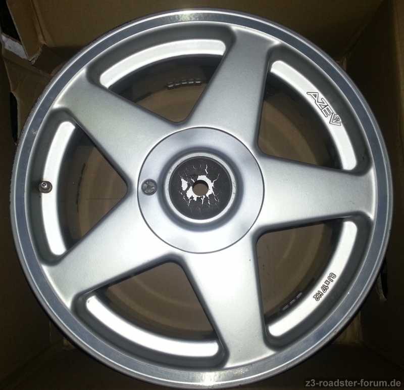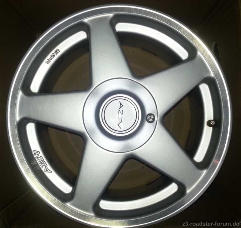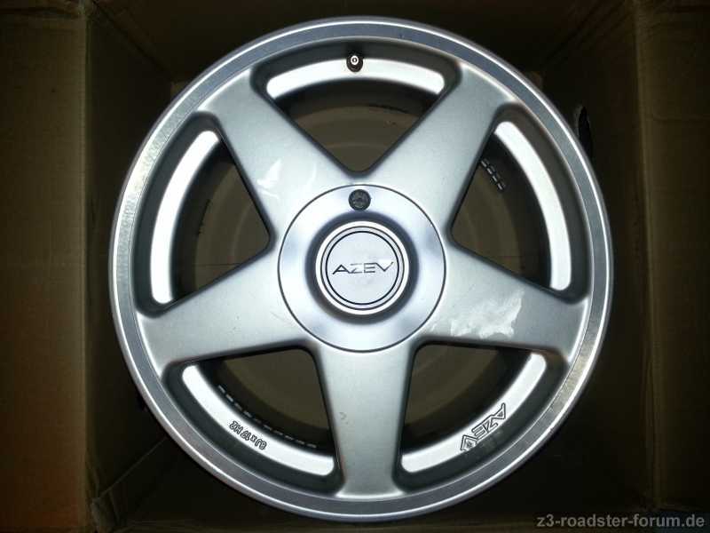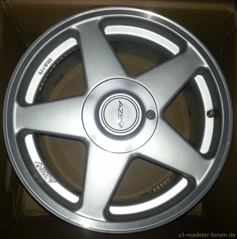 incl. 4 Nabenabdeckungen (bei einem fehlt das AZEV-Logo, als Ersatz 4 selbstklebende BMW-Silikonembleme), 1 Montageschlüssel und 4 montierte Metallventile.