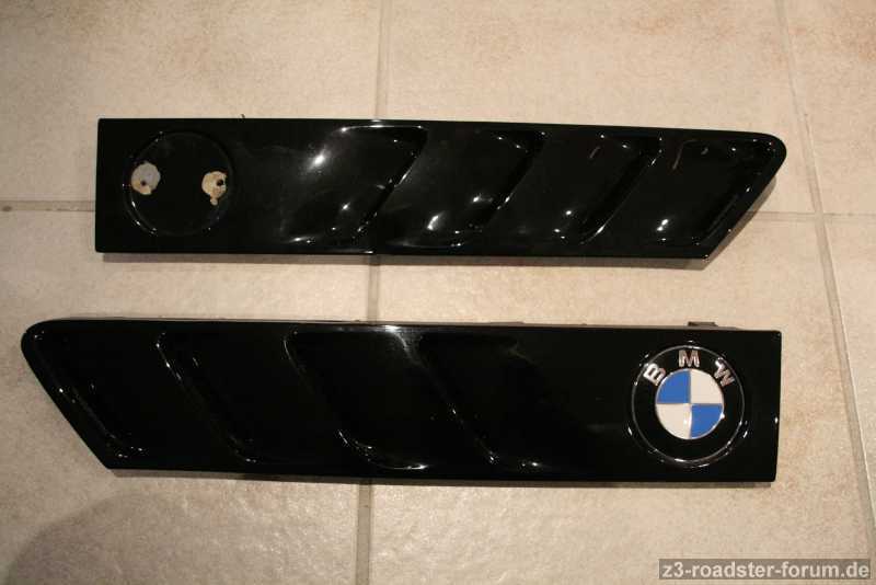 Das fahrerseitige Emblem ist neuwertig, auf der Beifahrerseite fehlt das Emblem leider und