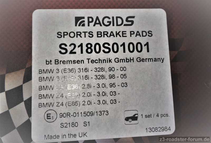 Bremsbeläge VA Pagid S, Z3 ; e36 etc
