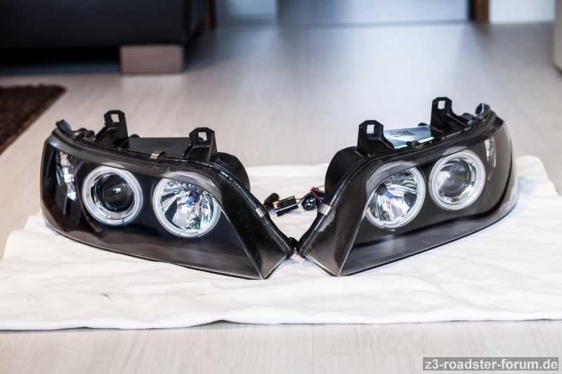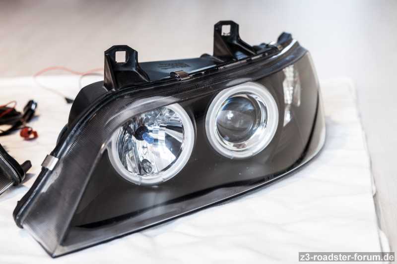 Ich verkaufe meine BMW Z3 Angel Eyes Scheinwerfer in schwarzer Optik mit E-Prüfzeichen (Eintragungsfrei).