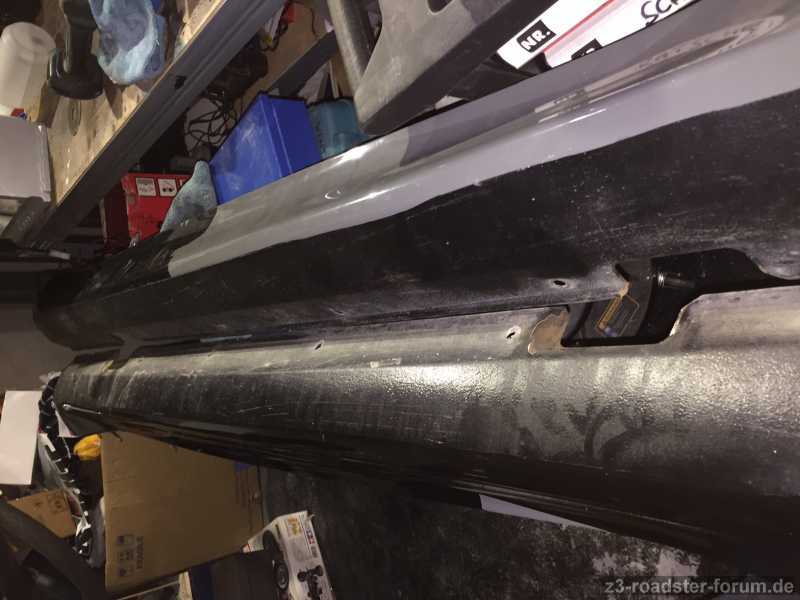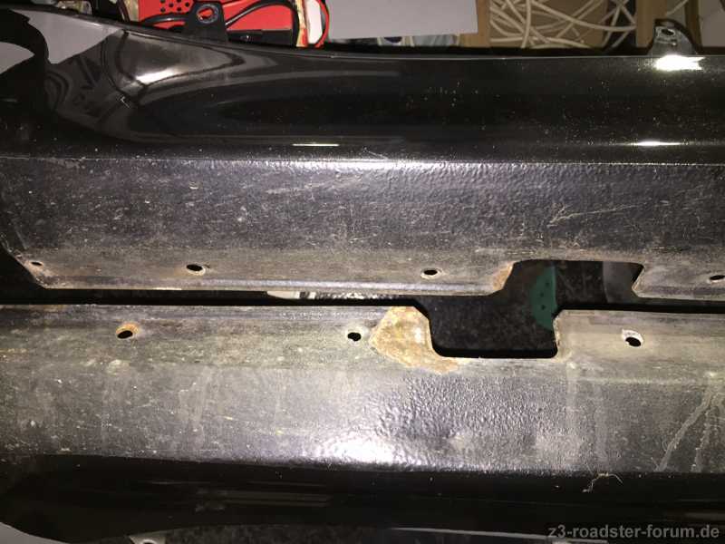 Schweller vom 6 Zylinder, lackiert in Cosmosschwarz-Metallic, Rostzustand siehe Fotos. Habe bei einem den Rost innen schon begonnen zu entfernen, mich dann aber doch für Neuteile entschieden (...Aero