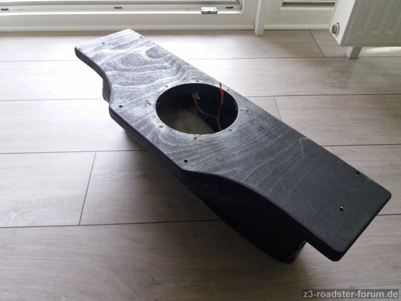 Wie man sieht habe ich die Oberfläche nie komplett fertig gestellt, es wurde alles nur einmal mit schwarzem Lack besprüht. Wer es also ordentlich haben möchte, kann das Brett oben mit Leder beziehen o.ä.