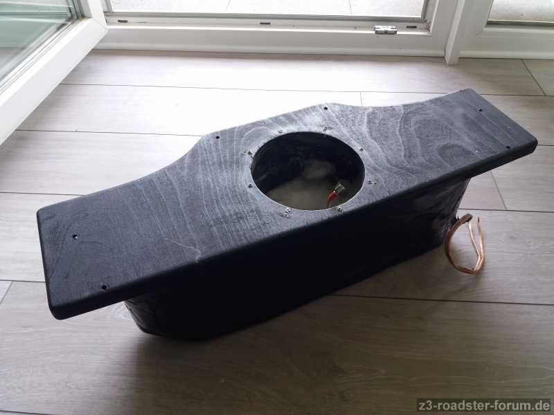 Verkaufe aufgrund eines Fahrzeugwechsels mein selbstgebautes GFK-Subwoofergehäuse. Das Gehäuse passt perfekt hinten in die hintere Konsole, man muss nur das Inlet rausnehmen und den Deckel abschrauben. Das Gehäuse wiegt ca. 5kg, es ist also auch dickwandig laminiert. Oben drauf ist eine 21mm Multiplexplatte mit einem 140mm Ausschnitt. Verbaut war mal ein Exact! Sub sowie der jetzt auch hier angebotene JL. Es ist zwar schon relativ lange her dass ich es gebaut habe, aber ich meine mich an ca. 5ltr. Volumen erinnern zu können (ohne Gewähr). In Kombination mit dem JL klang das jedenfalls sehr gut.