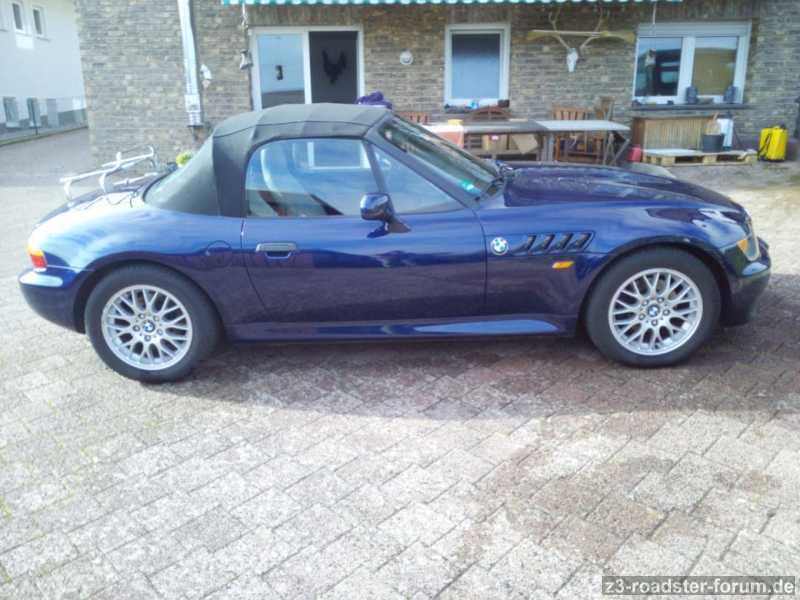 wir trennen uns schweren Herzens von unserem Z3 1.9 Bj. 1997 TÜV 07/ 2019 mit 128000 km Schaltwagen Alufelgen 16 Zoll mit 225 ziger Reifen,auf der Hinterachse sind 30 mm Spurplatten verbaut, Farbe dunkel Blaumetallic, Dach Schwarz,magnetischer Steinschlagschutz Schwarz am hinteren Kotflügel, Innenausstattung Leatherette Schwarz/Grau,auf dem Kofferraumdeckel ist ein vc. Kofferträger verbaut mit orginal abschließbarem Hartschalenkoffer. Das Auto ist nur als Sommerfahrzeug genutzt worden und jeden Winter wurde es mit dem Orginal Stanley Pyjama eingewintert.Das Auto ist in einem Top Zustand. vB: 8700 €