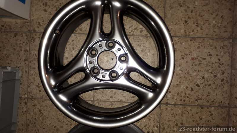 Die Felgen sind gerade mit Chromlack frisch lackiert worden.