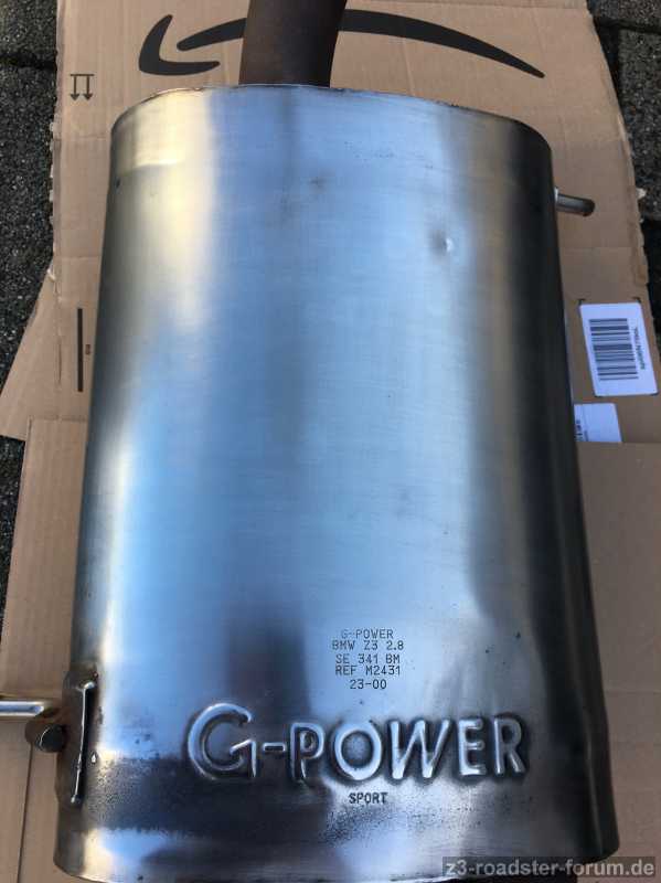 Sehr seltener G Power ESD für denn Z3 2,8l/ 2,0l Soundstufe Sport. Klingt wie die Eisenmann alte Version Soundstufe S. Gutachten natürlich vorhanden. Der G Power wurde damals bei Eisenmann gefertigt. Toller kerniger sportlicher Sound.