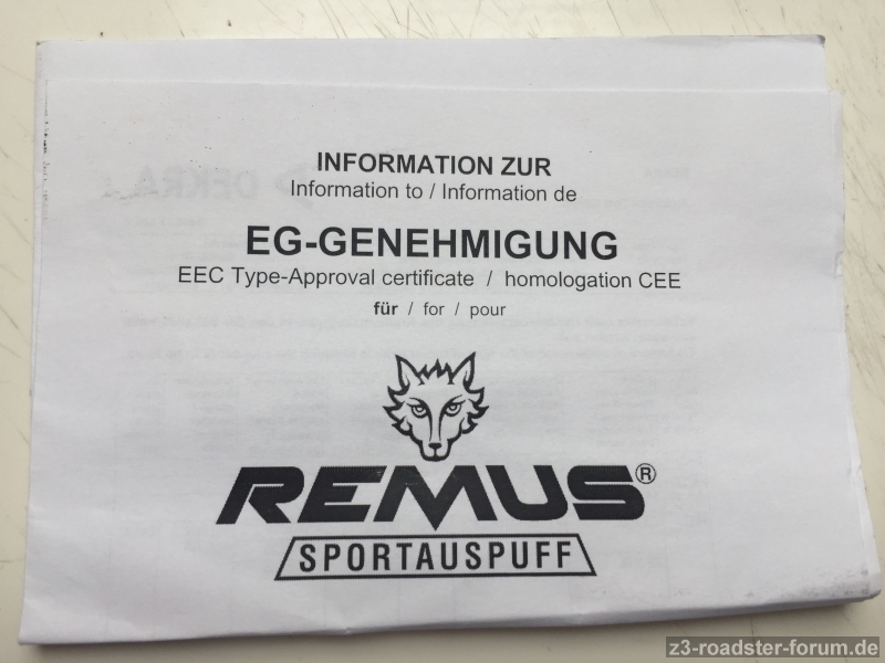 Verkaufe REMUS Sportauspuff für BMW Z3 3.0i Roadster oder Coupé, ausschließlich wegen Rückrüstung auf Original.