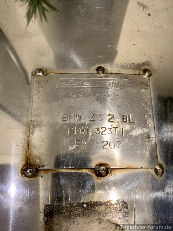 Biete einen Eisenmann ESD EB 5207 für den Z3 2.8. Der Auspuff ist aus 2004 und in der „N“ Version mit 60mm Endrohre ohne Gravur. Ideal für den 2.8 mit Einzelvanos und den schmalen Ausschnitt an der Stoßstange.