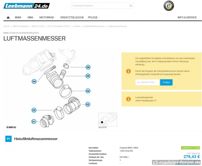 ich habe im Frühjahr viele Komponenten wie KGE und Sensoren/Geber an beiden Zettis getauscht. Jetzt habe ich mir auch noch neue LMM gegönnt. Einer ist bereits weg und einer ist noch übrig. Ich biete hier einen Original LMM für einen 2,8L DV an (M52B28 TU), mit der Teilenummer 13621432356. Ich hatte bis vor dem Ausbau keine Fehlermeldungen im Steuergerät zum LMM. Falls er also nicht weg geht, kommt er ins Ersatzteillager. Als Preis möchte ich 75,-€ VB zuzüglich Versand haben.