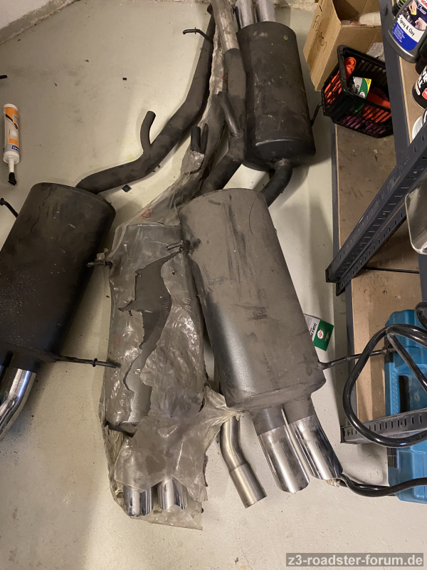 ich räume wieder einmal den Keller auf und habe noch einige Sportauspuffe von Hamann für den z3 zu verkaufen. Sind alle neu und noch nie verbaut, lagern allerdings schon eine Weile. Damalige UVP 999€. Edelstahlanlagen mit schwarzer Pulverbeschichtung. DTM Endrohre samt Hamann Schriftzug. Am liebsten wäre mir Abholung aber grundsätzlich kann man die auch verschicken. Preise sind inkl. Versand, wenn ich nicht verschicken muss können wir uns darüber noch einmal unterhalten. Kopien von den Gutachten gibt es dazu.