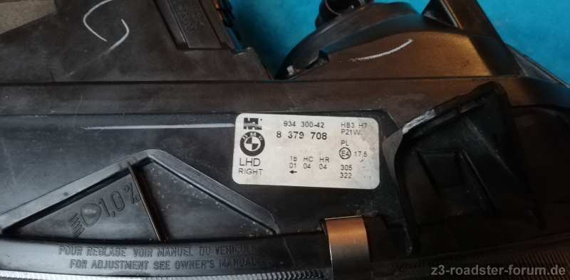 Der Scheinwerfer sieht vom Glas her noch richtig gut aus. Wenn man ganz genau hinschaut, kann man innen eine leichte Verfärbung der Streuscheibe erkennen, ist auf den Bildern aber gar nicht zu sehen.