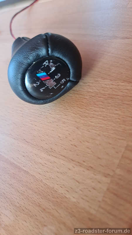 Ich biete einen neu mit Leder überzogenen Schaltknopf an.