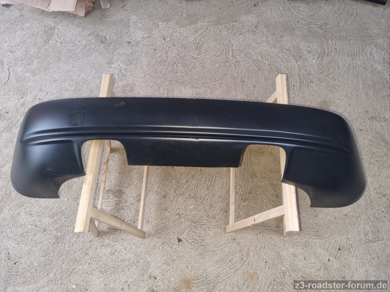 Die Stoßstange ist neu und unlackiert mit ein paar Lagerspuren