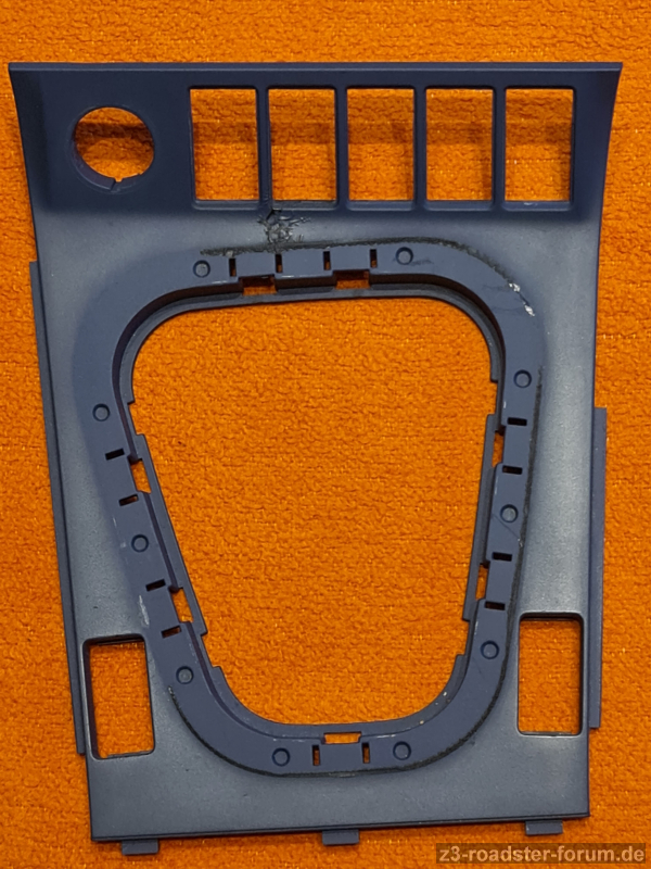 Wenn dieser montiert ist, sieht man das nicht (Bilder). Einzig an der Stelle zwischen der ersten und zweiten linken Schalteraussparung ist der Lack schrumpelig, könnte man mit Smartrepair ausbessern.