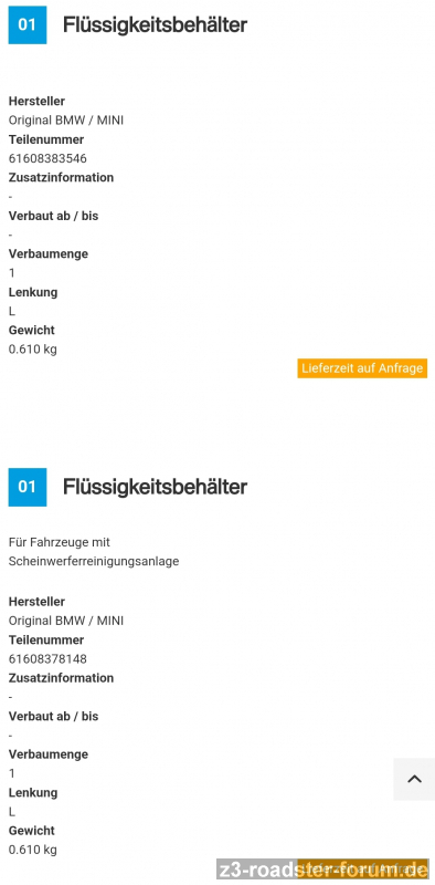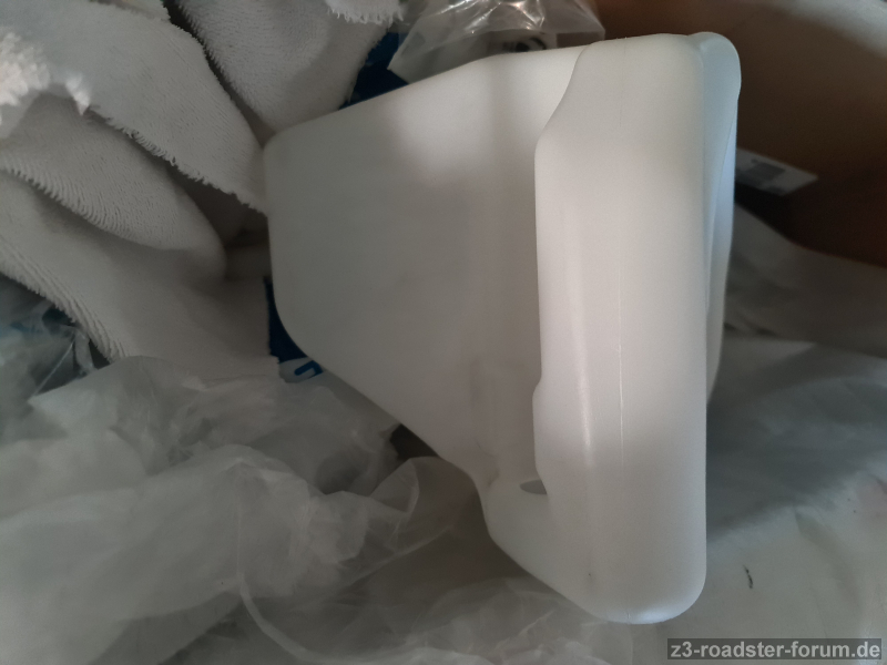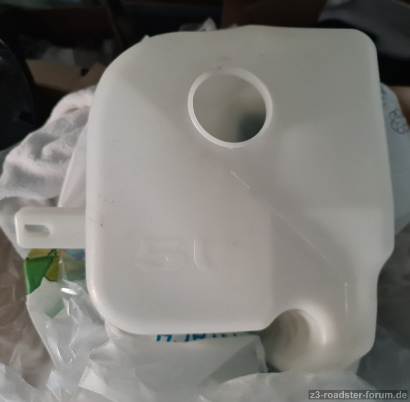 Für alle, die ihren Z3 ohne SRA ganzjährig/tagtäglich nutzen die ideale Möglichkeit, den orig. 2,5l-Behälter gegen ein mit doppelten Fassungsvermögen auszutauschen. Das zweite Loch kann man durch einen passenden doityourself-Verschluss abdichten.