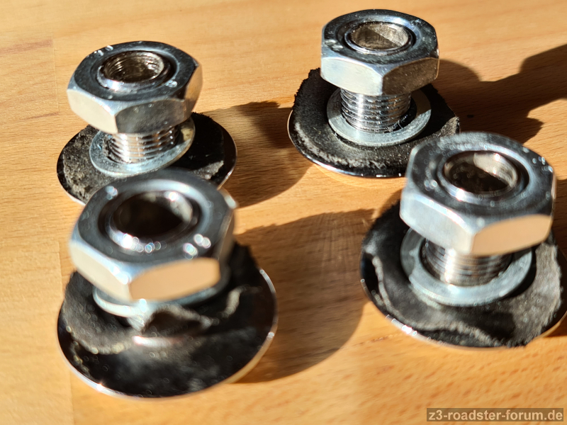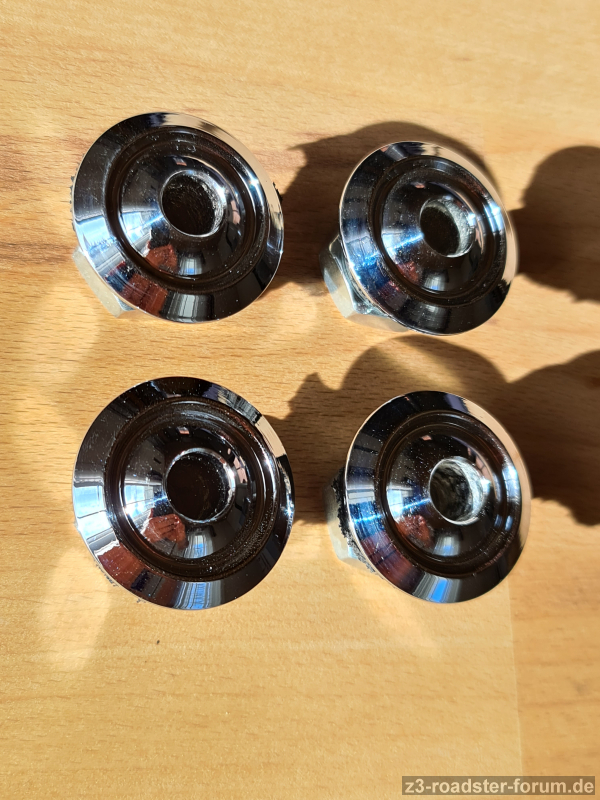 Die jeweils vier Muttern und Unterlegscheiben sowie Gewinde sind in einem tadellosen Zustand.