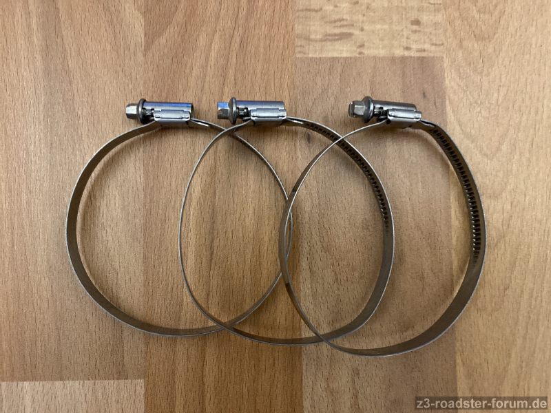 Zusätzlich habe ich auch noch drei passende und originale BMW Schlauchschellen. Ebenfalls neu und unbenutzt: