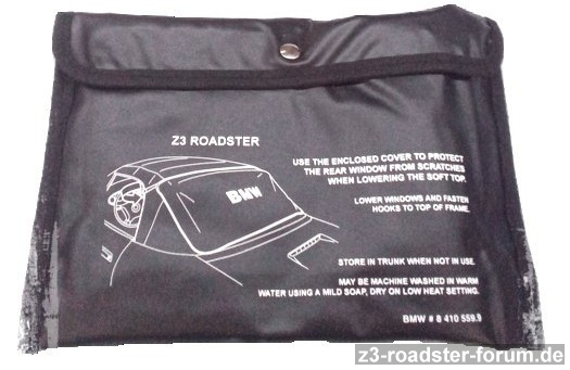 biete ein neues Original BMW-Heckscheibentuch mit Tasche für den Z3 Roadster an. (Noch Original in Folie verpackt.)