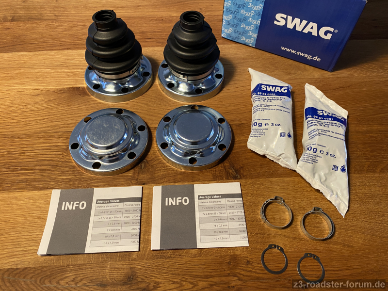 verkauft werden 2 neue und unbenutzte Faltenbalgsätze von SWAG zur Überholung der getriebeseitigen Faltenbälge an der Antriebswelle.