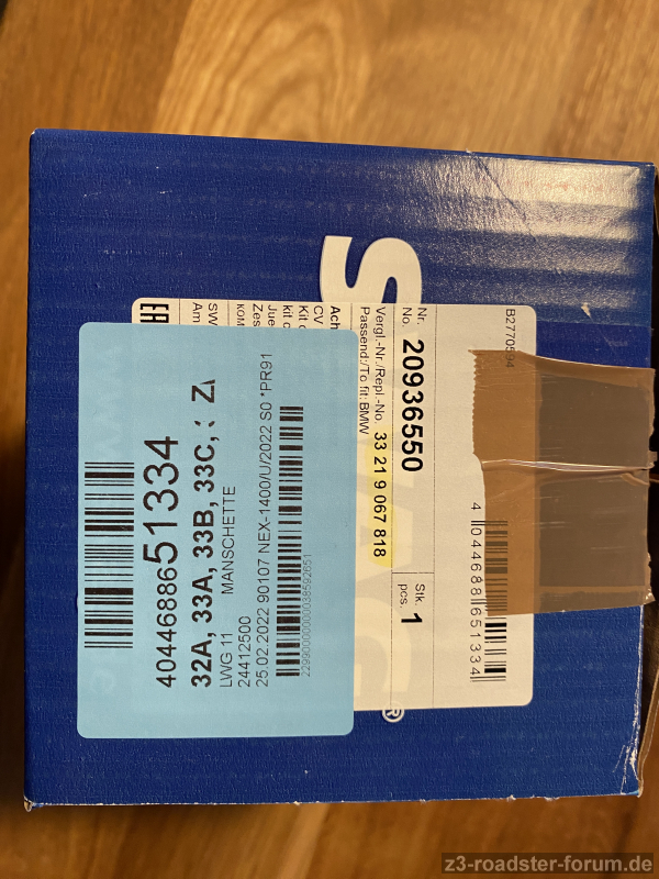 SWAG-Nr.: 20936550, equivalent zu BMW-Teilenummer: 33219067818 (siehe Foto)