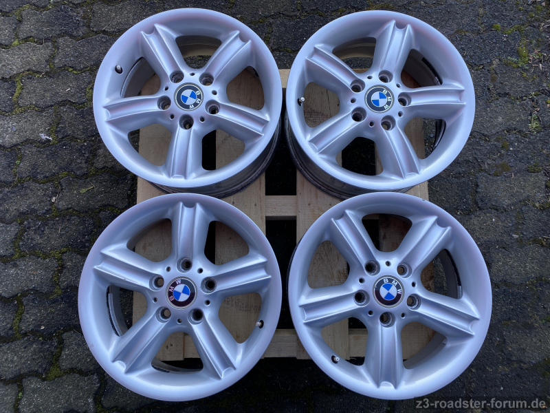 zum Verkauf steht ein Felgensatz Styling 55 7JX16 ET:46 (ETK: 36111096138) inkl. 4 original BMW Nabendeckel.