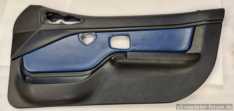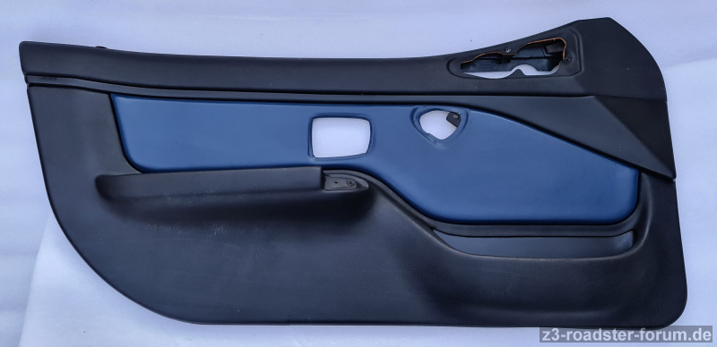 Die beiden Türpappen haben einen wirklich guten Zustand, da diese aus einem werksinternen Testfahrzeug stammen und dieser nur ein paar Monate in Gebrauch war, anschließend zerlegt und die Teile eingelagert wurden. Das gesamte Material ist frei von Quetschspuren wie .B. von eingeklemmter Gurtschnalle und auch Abrieb von Straßenschuhen ist keiner zu sehen. Die schwarzen Kunststoffteile kleben wie am ersten Tag und es sind keine Blasen zu ertasten.