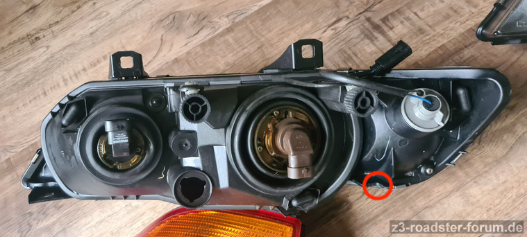 Bei den Scheinwerfern ist jeweils eine der vier Halterungen (s. rote Markierungen im unteren Bereich der Leuchten) gebrochen. Die anderen sind absolut intakt.