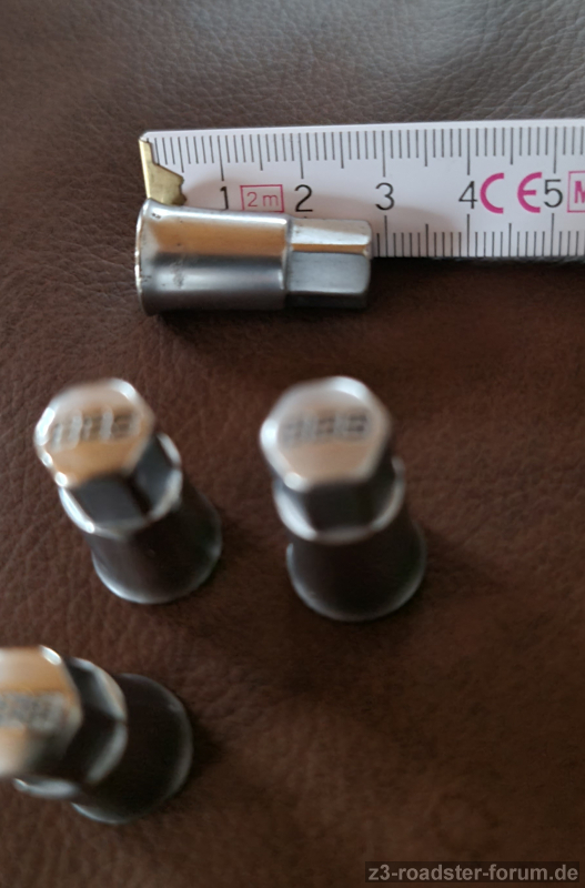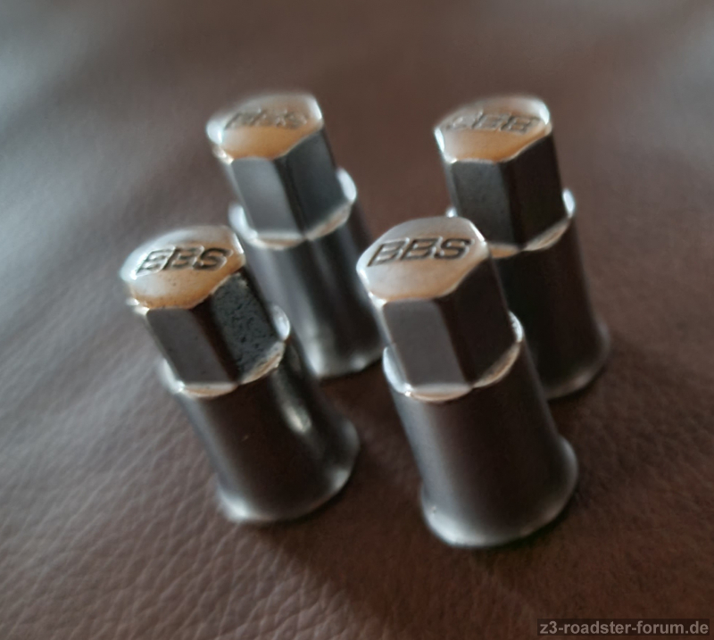 Diese werden statt der Kunststoff-/Metallventilkappen auf das Ventil aufgeschraubt und decken das schwarze Gummiventil mit ab.
