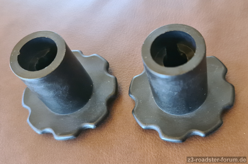 Das sind die schwarzen Kunststoffkappen, die man zur Lagerung auf die beiden Verschlüsse aufsetzt.