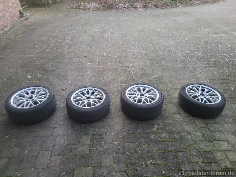 ich möchte mich von einem Satz Mischbereifung Kreuzspeiche 78 trennen, den ich gebraucht gekauft habe und 2 Saisons gefahren bin. Eigentlich wollte ich ihn Ende letzten Jahres aufbereiten und in mittelgrau neu pulvern lassen, da ich aber noch einen guten und einen neuwertigen Satz habe, stelle ich diesen nun zum Verkauf.