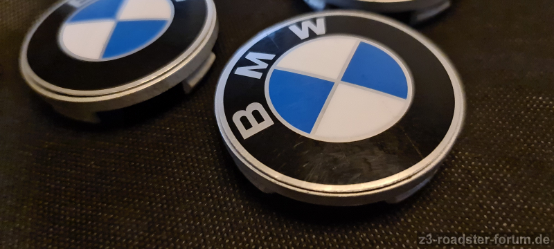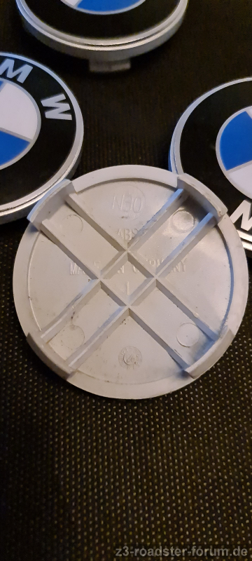 Besonderheit: verklebt auf einer Zubehörfelgen-Nabenabdeckungen aus Kunststoff mit 60mm Durchmesser, können abgezogen werden