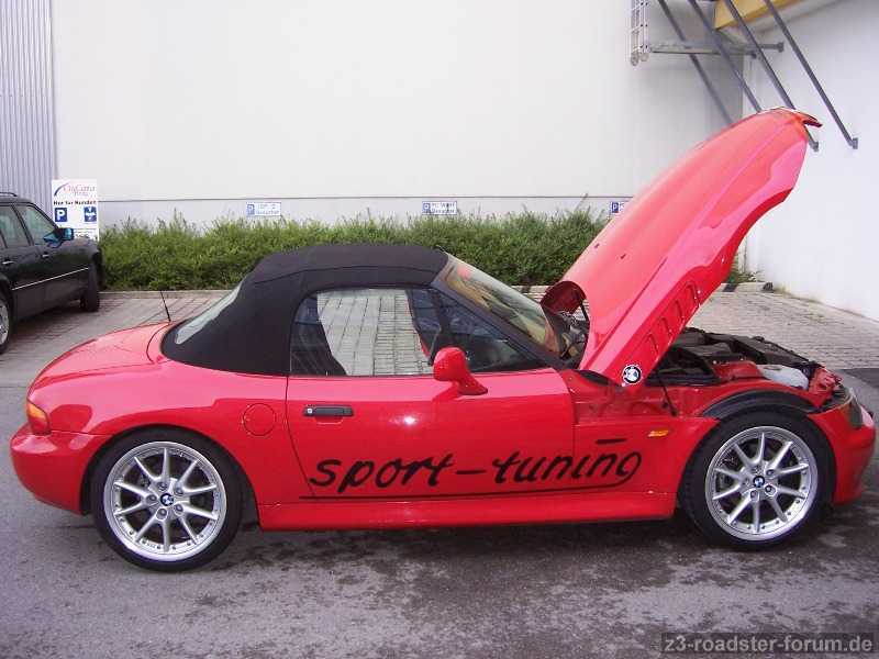 Jetzt habe ich hier aber dieses Auto stehen. Es ist wohl der 2. Z3 der jemals vom Band gelaufen ist. Er wurde von einer Tuningfirma aus Forstern optimiert. Leistung wie auch Optik. Er ist in einem sehr gepflegten Zustand.