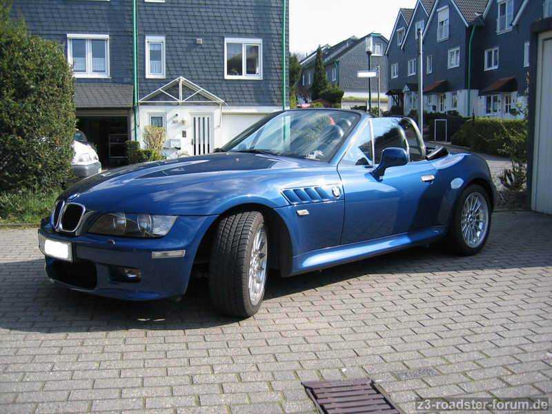 Topasblau Metallic Leder Chameleon (schwarz), Sportedition, teilelektr. Sportsitze, M-Lederlenkrad, M-Sportfahrwerk, Sperrdifferenzial, LM mit Mischbereifung, ABS, DSC; Tempomat, Seitenairbag, Überrollbügel, Alarmanlage, Funkfernbedienung für Zentralverriegelung, Klimaanlage, Sitzheizung, Bordcomputer, Radio Business CD, elektr. hydr. Verdeck, beheizb. Außenspiegel und Waschdüsen, Scheinwerferreinigungsanlage, Nebelscheinwerfer, weiße Blinkleuchten, Hardtopvorbereitung, Fußmatten in Velours