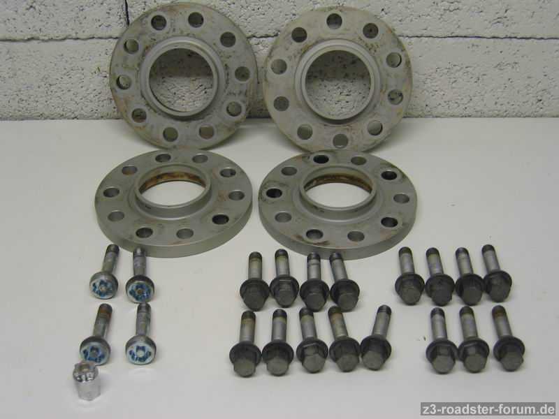 2 neuwertige Sätze H&R Distanzscheiben. Die Teilenummer lautet 3075725 H&R. Die Scheibenbreite beträgt je 15 mm. Somit ergibt sich eine Spurverbreiterung von 30mm je Achse. Mitgeliefert werden die entsprechenden Schrauben mit Felgenschloss