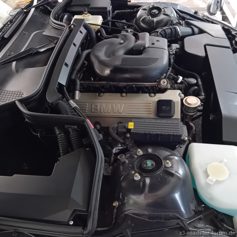 Ende 2024 fand ich dann einen cossmosschwarzen Z3, 1.9, FL, mit ca. 32.000km. Klima hat er keine, dafür M-Sportfahrwerk und Sportsitze. Der Vorbesitzer hatte bereits begonnen das Fahrzeug auf weiße Blinker umzurüsten – Heckleuchten fehlen noch.