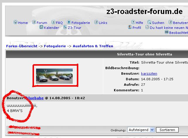 spider-z hat geschrieben:8) hallo thomas und karzzzten, da habt ihr was angestelltseit sonntag surft mein göttergatte im internet und zeigt mir ständig 2.8 zettis