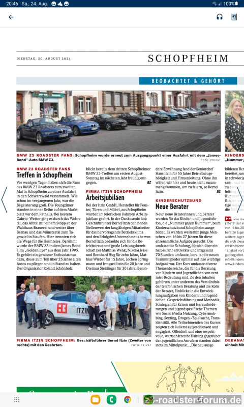 Info kam nur an die bekannten Mailadressen aus der Teilnahme 2023. Ich habe noch weitere Z3 User in nächster Umgebung angeschrieben.
