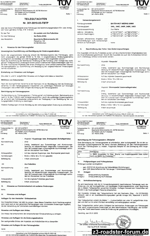 Bei mir hat aber noch nie jemand die Pedalen beanstandet oder nach einer ABE gefragt...