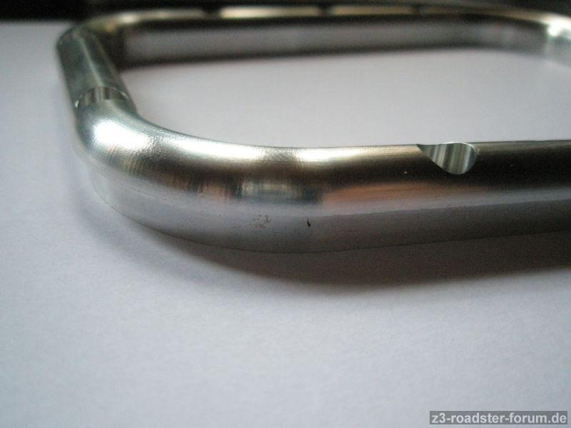 Die Original Klebekante vom Schaltsack zurückschneiden. Etwas kürzer als die herausstehenden Gewinde vom Rahmen. Schrauben sind M4 x 16 Innensechskant. M4 x 15 passt besser, habe ich aber nicht in Inox.
